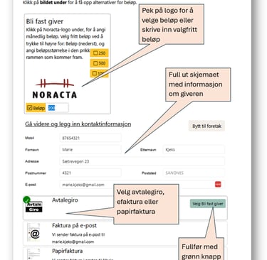 På bildet nedenfor vises hvordan skjemaet kan fylles ut.